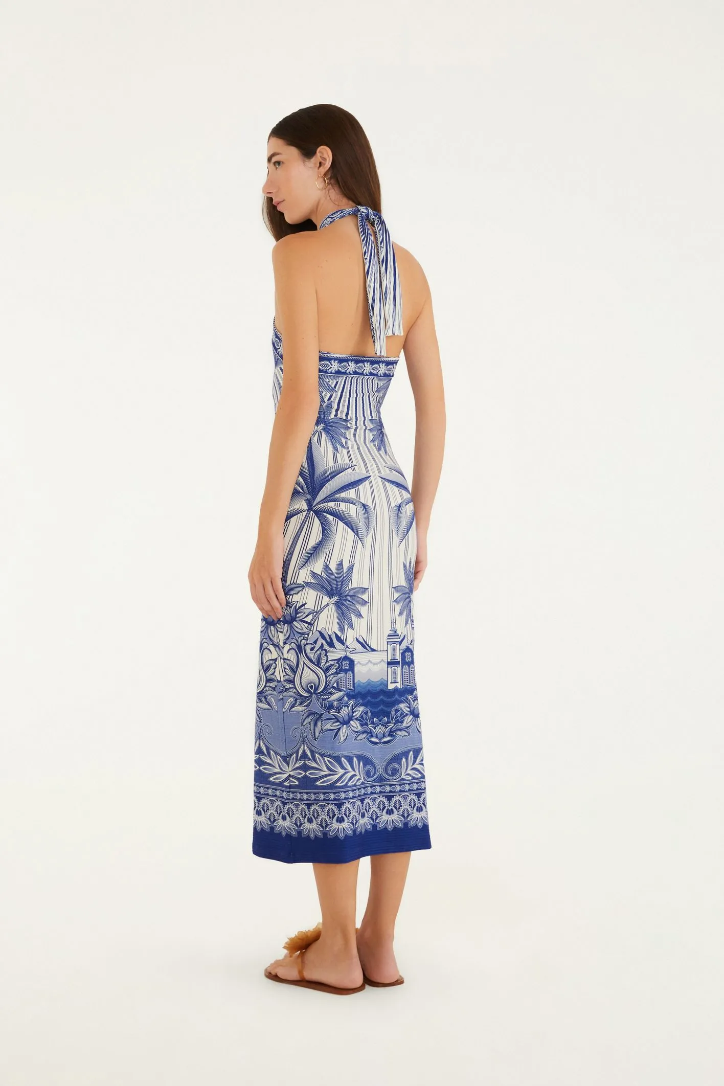 VESTIDO LONGO ALÇAS CAVALOS MARINHOS