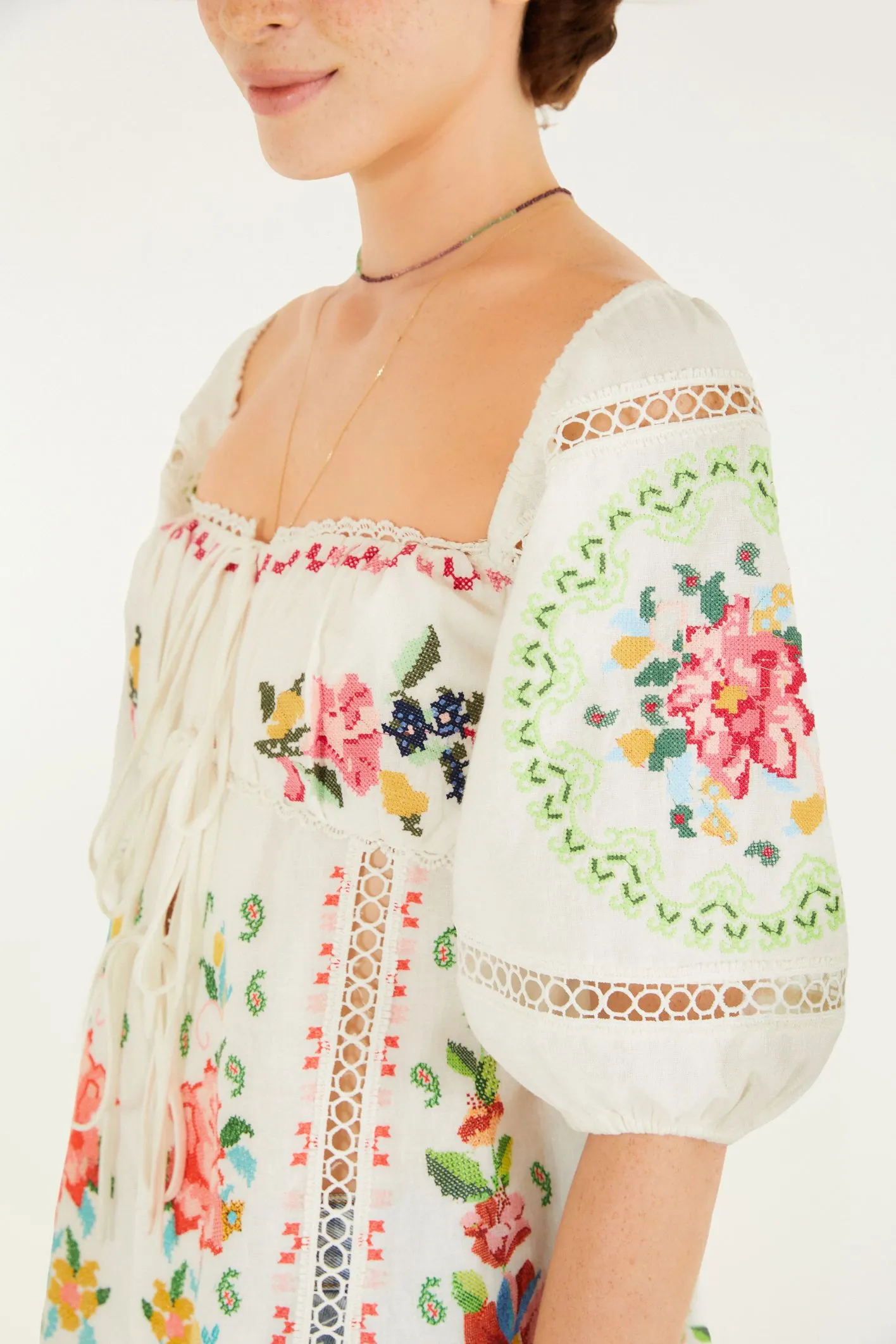 blusa bordada borda bandana traz um charme especial com seu decote quadrado e detalhes intrincados de bordado. as mangas bufantes finalizam em punhos elegantes, proporcionando um toque único. perfeita para encontros casuais ou eventos ao ar livre.