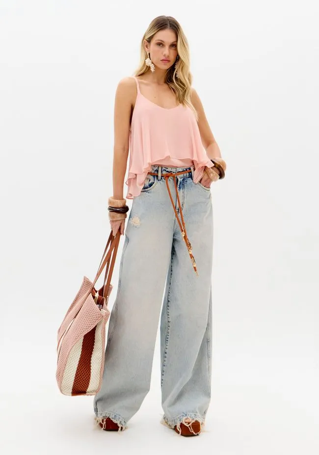 A blusa é confeccionada em chiffon, um tecido plano e fluido de viscose. Conta com alças finas, decote em v e caimento solto no corpo. A modelagem em camadas cria um efeito de sobreposição que atualiza qualquer visual. Invista!
