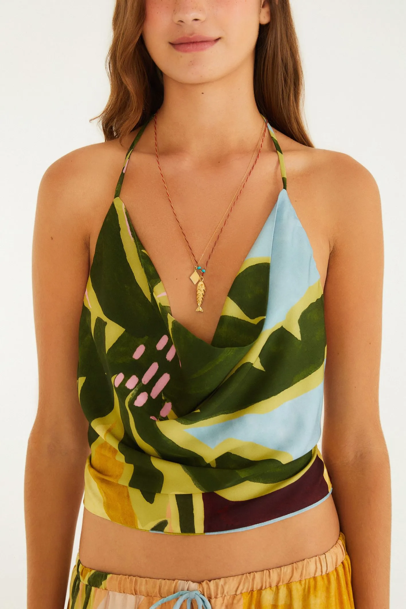 blusa degagê estampada burburinho. com decote degagê que valoriza a leveza do visual, possui alças ajustáveis que garantem conforto e praticidade. a modelagem fluida permite combinações perfeitas para um dia casual ao ar livre ou um encontro descontraído. o toque final fica por conta dos acabamentos sutis que elevam o charme da peça.