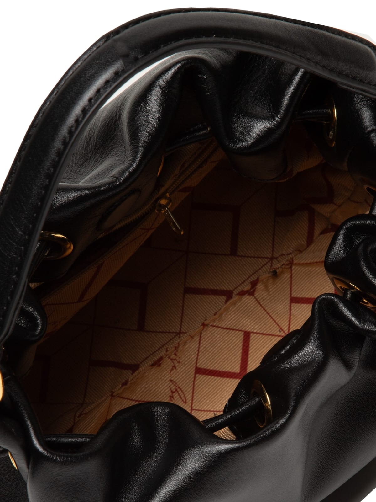 Com alça de mão e alça  propondo um elemento inesperado ao design, equilibrando modernidade e ampliando as ocasiões de uso como bolsa de mão ou crossbody.