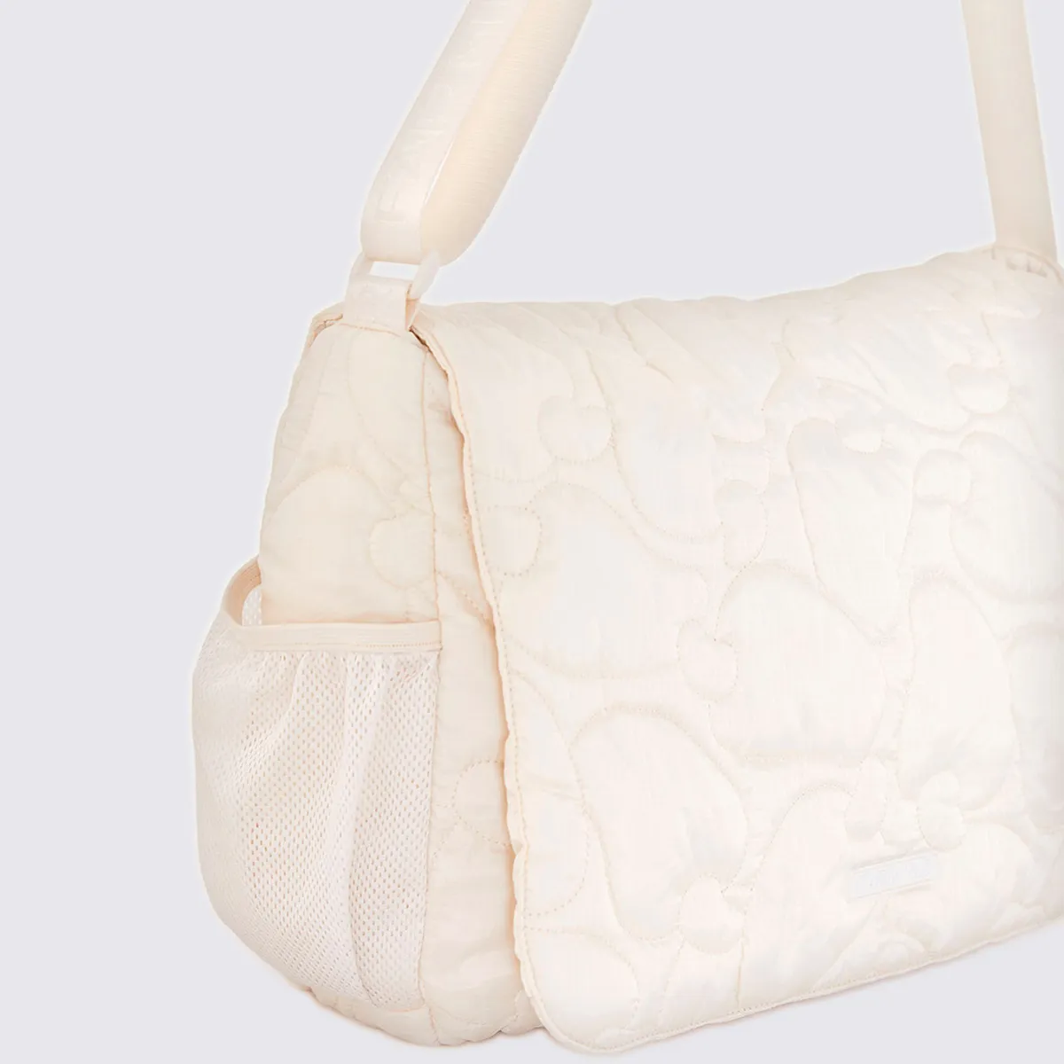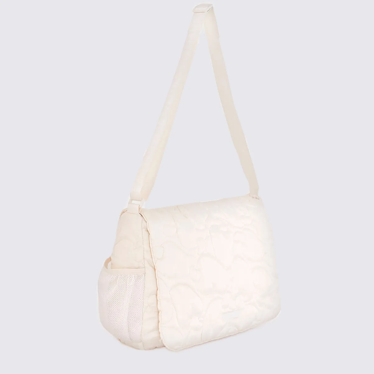 Confeccionada em material resistente, compartimento principal com fechamento em zíper, bolsos internos e compartimentos laterais em mesh. Alça regulável permite o uso na transversal ou no ombro.