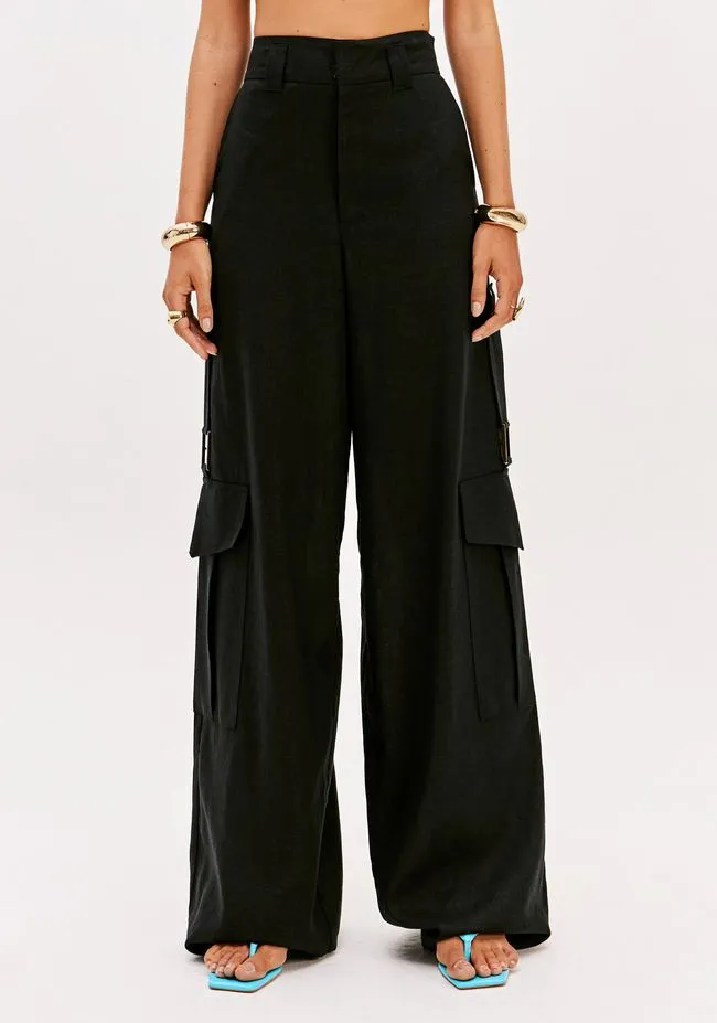 A calça full length de cintura alta é confeccionada em tecido plano leve com linho. Possui passantes no cós, fechamento frontal e bolsos funcionais com lapela e detalhe utilitário. Uma escolha urbana e moderna para composições marcantes!