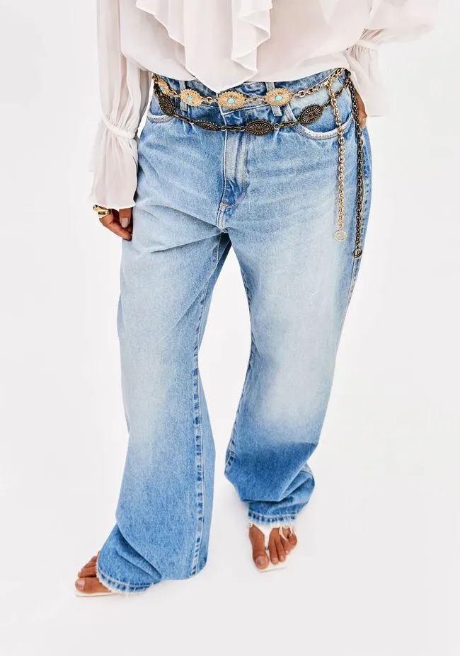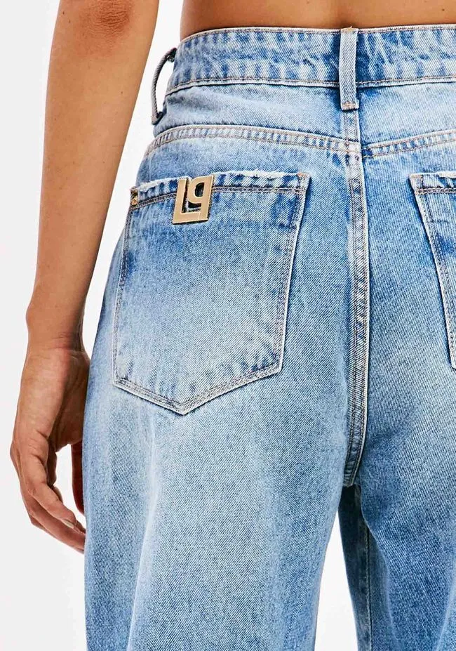 Calça Jeans Reta Cintura Super Alta versátil, possui passantes no cós, fechamento por botão e zíper e bolsos posteriores arrematados por aviamento lp.