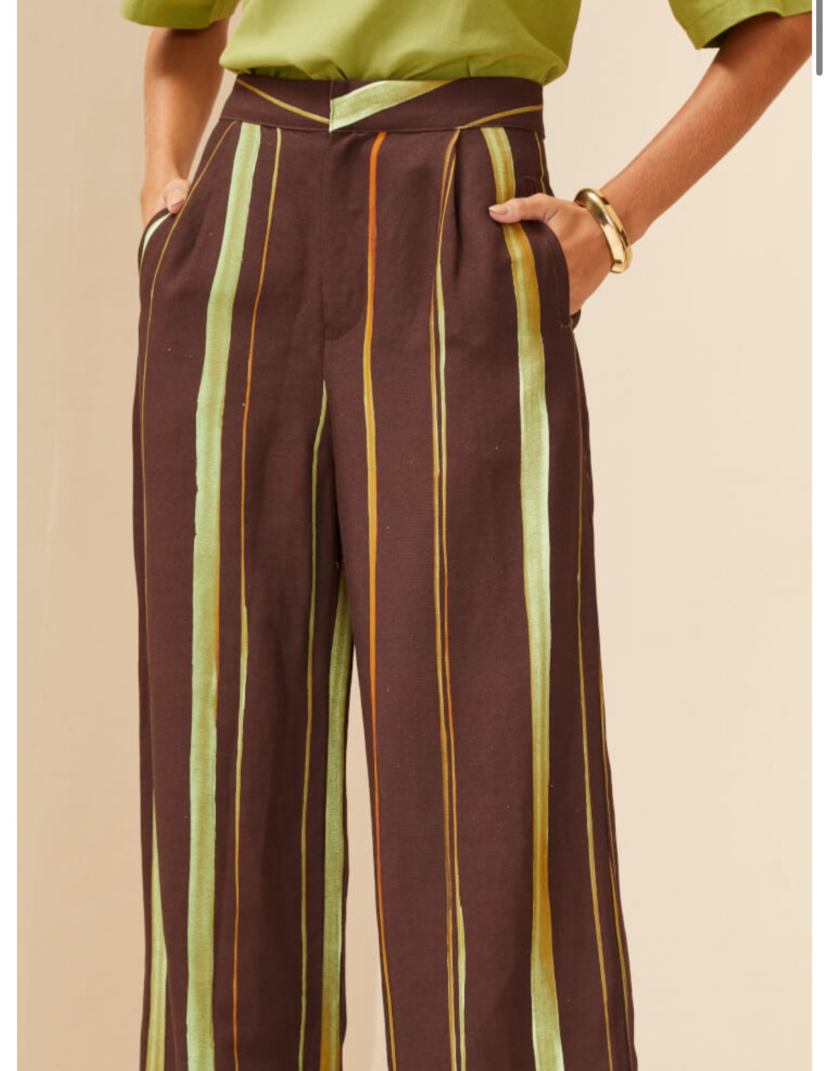Calça Linho Listras é a peça perfeita para trazer sofisticação e frescor ao visual. Com modelagem reta e cintura média,ela proporciona caimento leve e elegante.