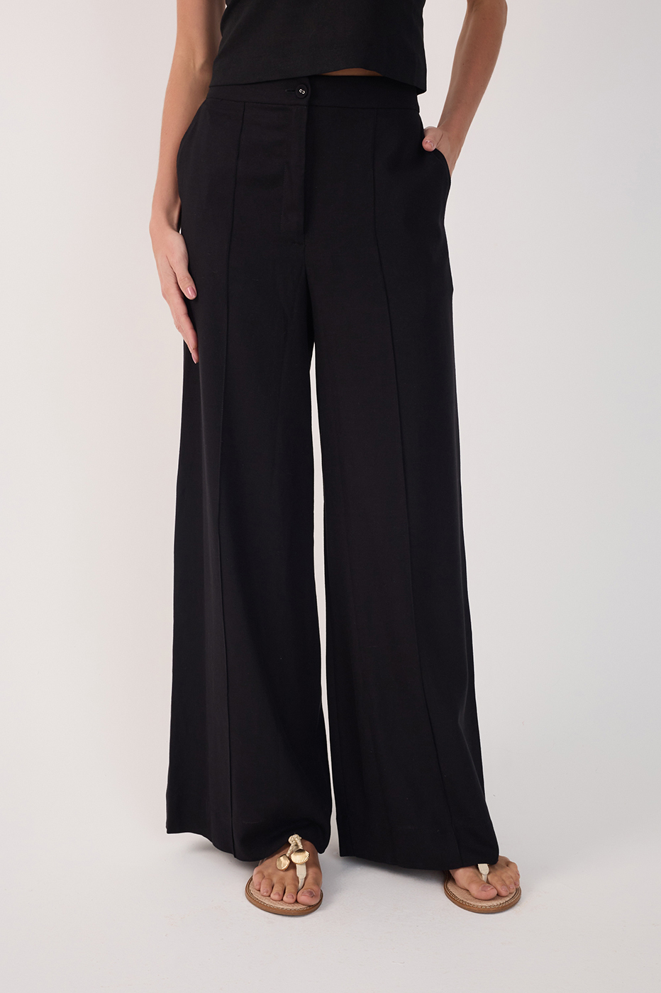 Calça Linho Nervuras, confeccionada em linho leve com textura de nervuras que adiciona sofisticação ao visual. O corte elegante e o caimento fluido.