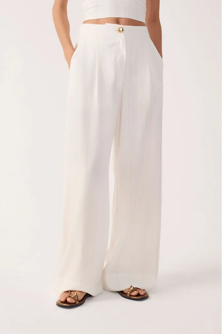 A Calça Linho Risca Lurex une o toque natural do linho ao brilho discreto do lurex, criando um visual sofisticado e cheio de leveza. A risca sutil alonga a silhueta, enquanto o caimento fluido traz conforto e elegância para o dia a dia.