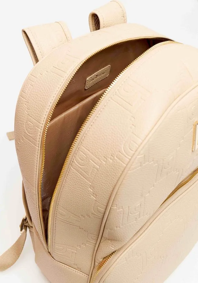 A mochila frequência maxi une praticidade e elegância com acabamento texturizado em monograma e logo metálico em destaque. Com amplo compartimento interno e bolso frontal com zíper, organiza seus itens com estilo. Ideal para rotina agitada com sofisticação.