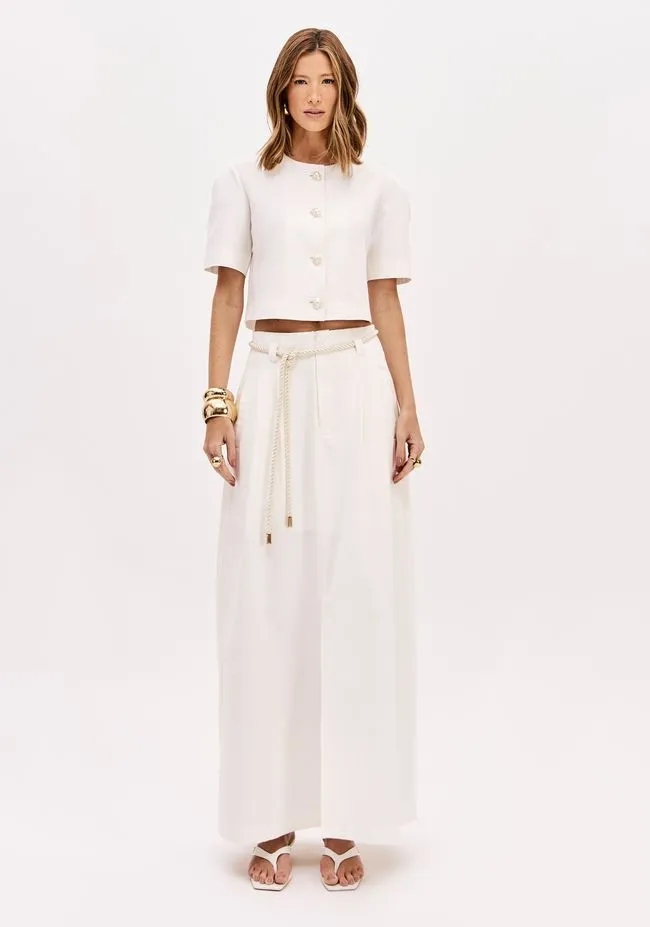A saia super midi feita em tecido plano encorpado traz cintura alta, bolsos funcionais e fenda frontal que garante leveza ao modelo. Acompanha cinto em cordão que valoriza a produção com um toque artesanal e refinado. Essencial para um visual elegante!