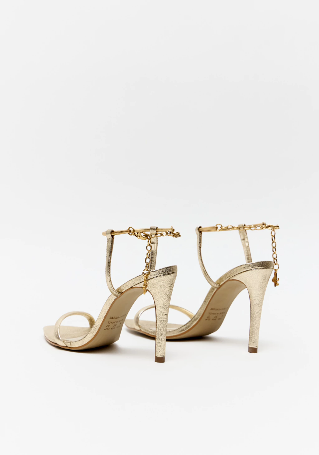 Elegante e sofisticada, a sandália de salto fino Lança Perfume é a escolha ideal para produções noturnas e ocasiões especiais. Confeccionada em material sintético de acabamento metalizado, apresenta O modelo possui design minimalista com tira única na parte frontal e fechamento no tornozelo com corrente delicada, que traz um toque moderno e glamouroso. O pingente metálico LP adiciona exclusividade e identidade à peça.