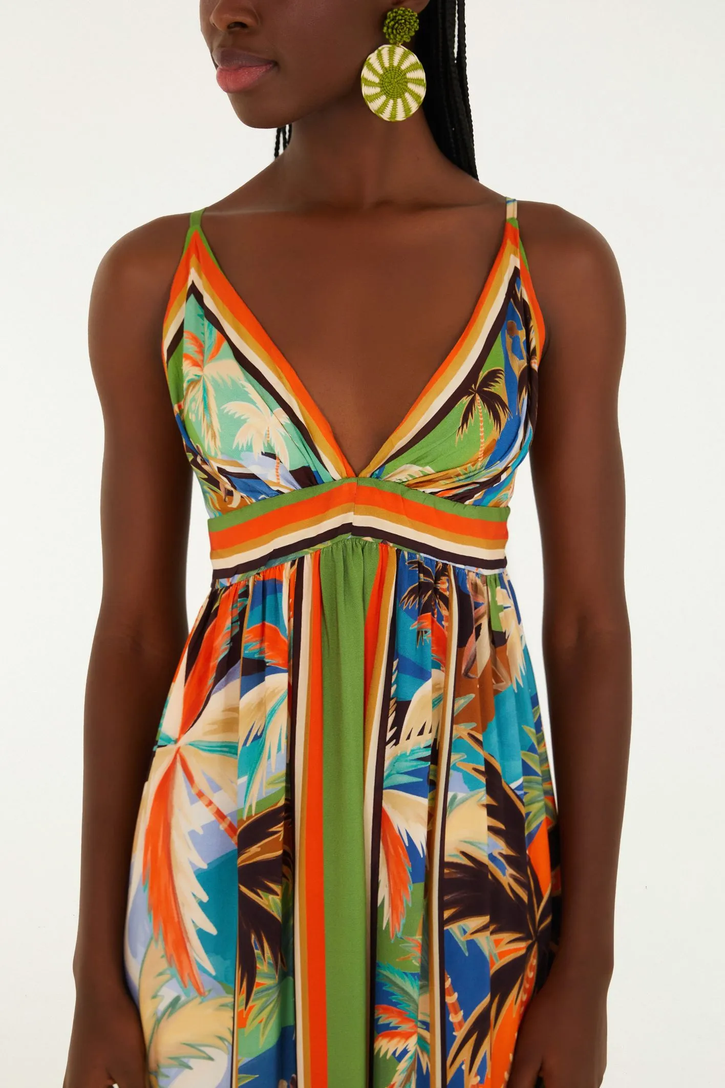 Vestido lenço estampado bem querer. com decote em v e alças finas, traz um caimento leve e fluido. a cintura é marcada com detalhe delicado, evidenciando o corte solto e confortável. perfeito para momentos casuais ou um almoço ao ar livre, une conforto e estilo em um só.