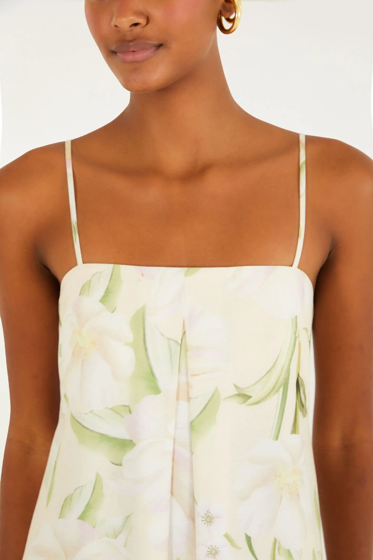 vestido longo alcinha estampado gabrielle possui decote reto e alças finas que trazem leveza ao visual. a modelagem fluida é perfeita para dias ensolarados. detalhe para a barra larga que confere um charme extra à peça, ideal para passeios ao ar livre ou encontros casuais.