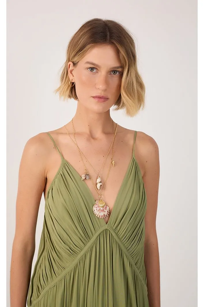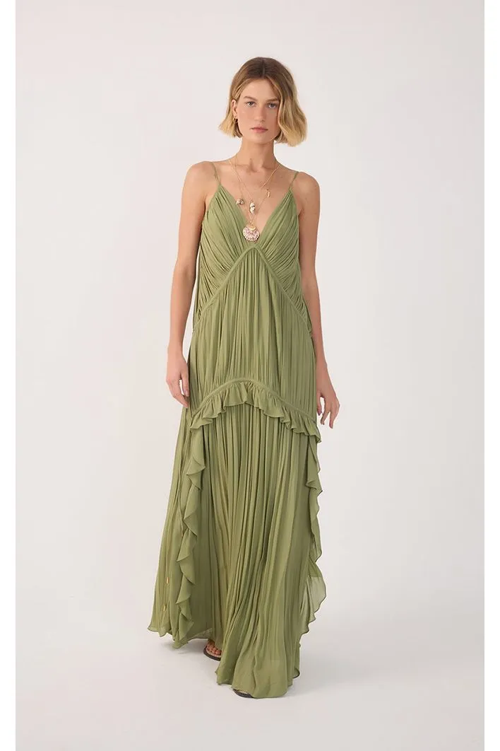 Perfeito para um visual leve e sofisticado. o nosso vestido possui shape soltinho e caimento fluido, comprimento longo, alças finas com regulagem e recortes que valorizam a silhueta com sutileza. Os babados e drapeados delicados adicionam movimento e romantismo à peça, enquanto o tecido em crepe garante leveza e frescor. Perfeito para ocasiões especiais ou para elevar produções com charme e feminilidade.