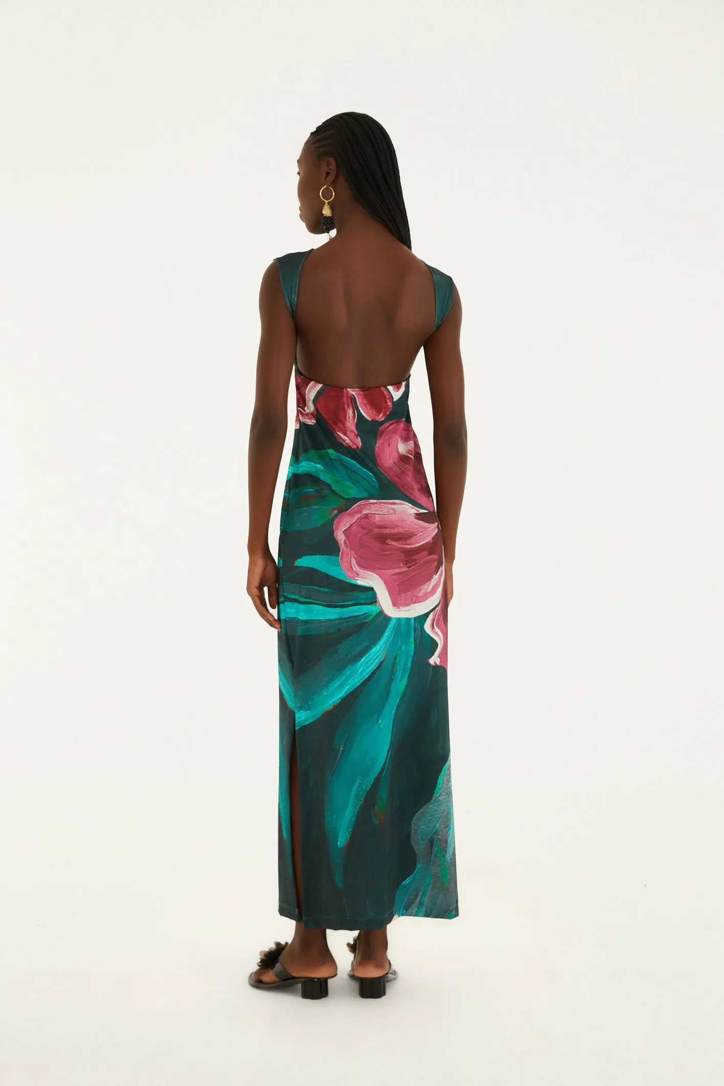 Vestido Midi Estampado Lineia com decote redondo e alças largas, este vestido traz um toque fresco e casual para seus momentos. Modelagem midi fluida.